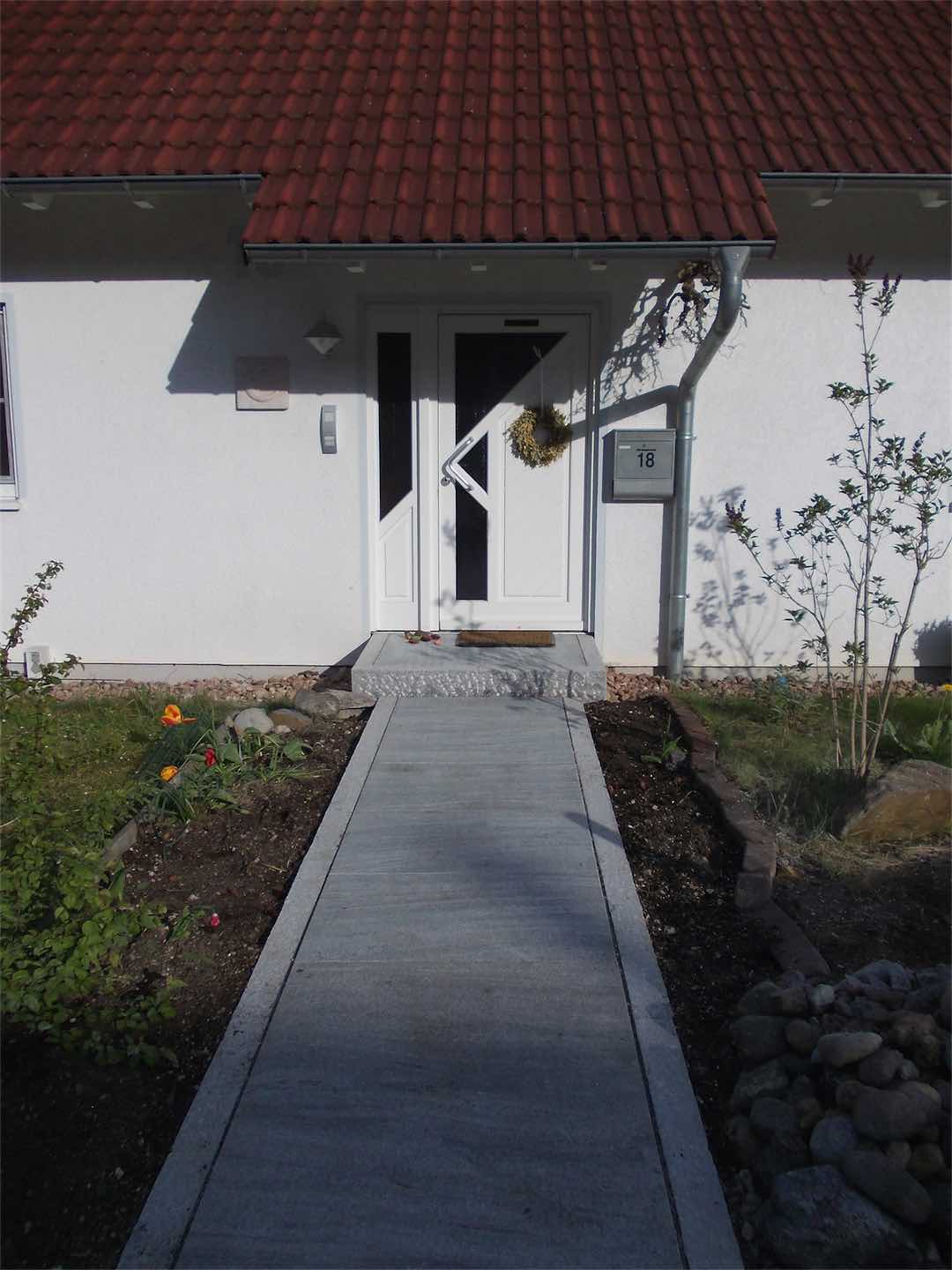 Eingangspodeste begrüßen Sie und Ihre Gäste täglich. Sie sollten daher sowohl optisch ansprechend als auch praktisch sein. Mit einem ansprechend gestalteten Eingangspodest unterstreichen wir den Charakter Ihres Hauses und schaffen eine einladende Atmosphäre. Vertrauen Sie auf unser Know-how, um ein Podest zu kreieren, das eine perfekte Verbindung zwischen Innen und Außen bietet. Auch wenn es um Rampen und Geländer geht sind wir mit Rat und Tat an Ihrer Seite.