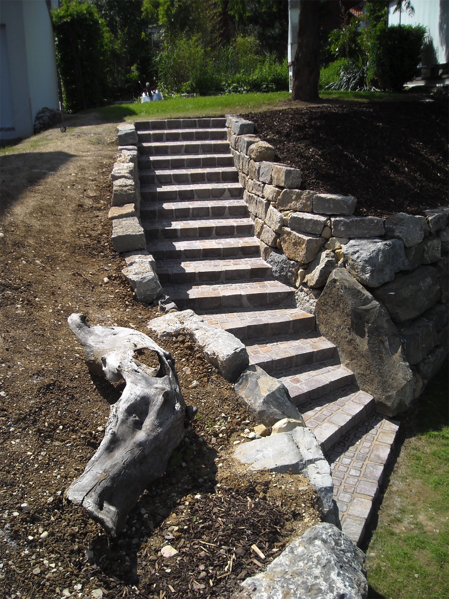 Ob es sich um einfache Gartenstufen oder eine komplexe Steintreppe handelt, Treppen sind oft ein zentrales Element im Landschaftsbau. Unser Team von Fachleuten bietet Ihnen hochwertige und sicherheitsbewusste Lösungen, die nicht nur sicher und funktional, sondern auch ästhetisch ansprechend sind.