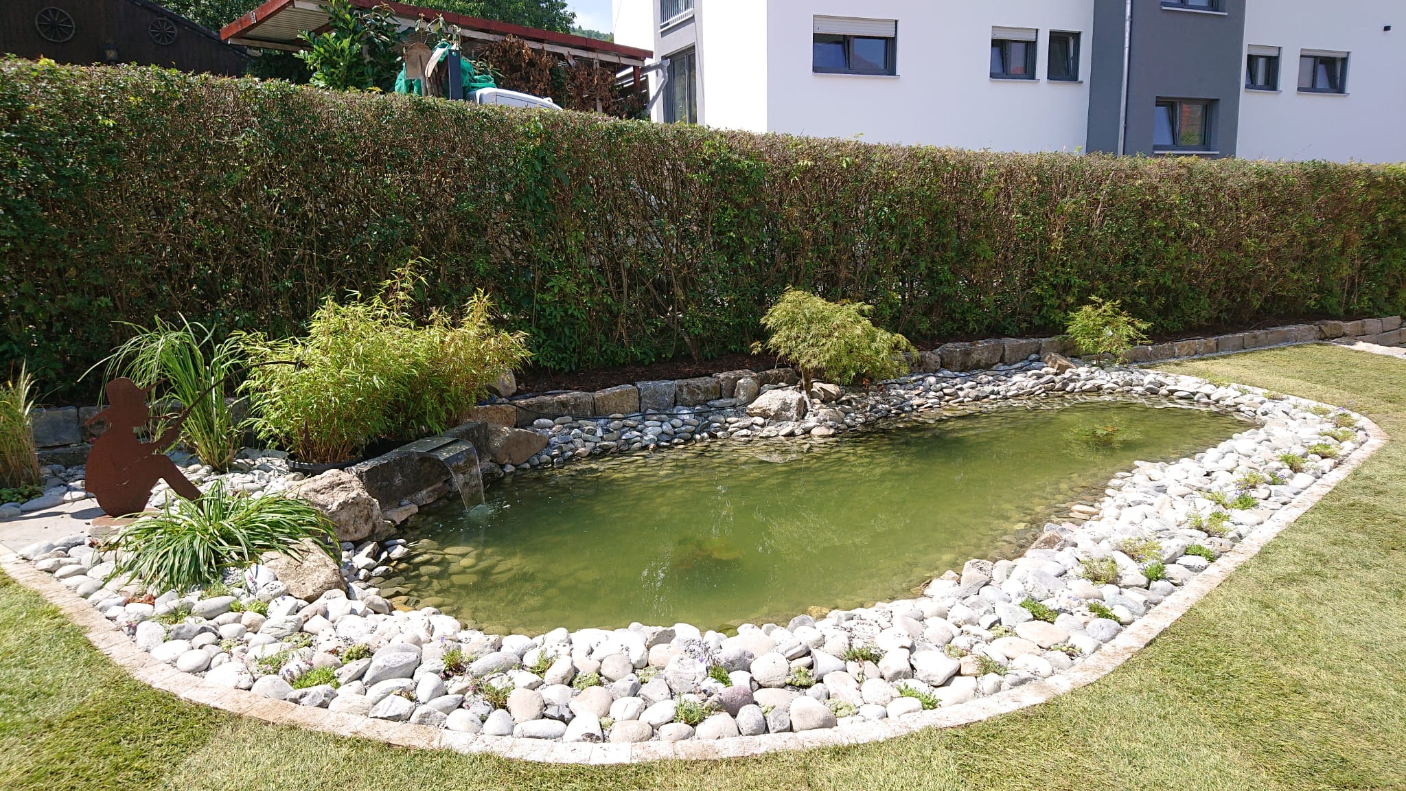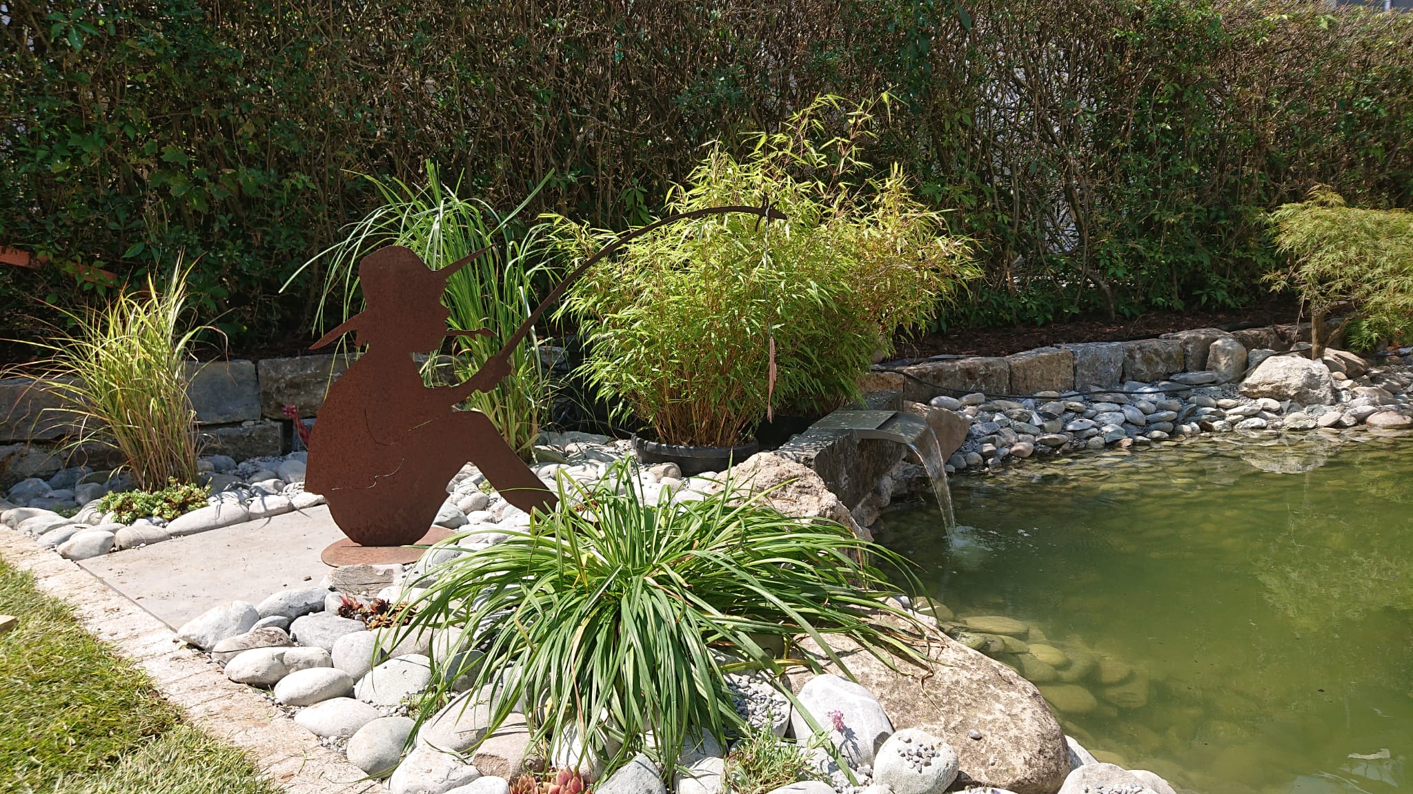 …Wasser im Garten schafft eine Atmosphäre der Ruhe und bringt Leben in jede Landschaft. Ob es sich um einen Teich, eine Springbrunnenanlage oder einen Bachlauf handelt, wir haben die Erfahrung und die Kreativität, um atemberaubende Wasserbauwerke zu kreieren, die eine Oase der Ruhe in Ihrem Garten schaffen.